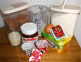 Para la cobertura: calentad en el micro unas gotas de leche, con una cucharada grande de margarina y una de Nutella