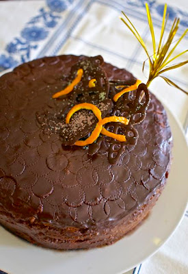 Me decidí por una tarta de chocolate y naranja amarga cogiendo ideas de allí y de allá.