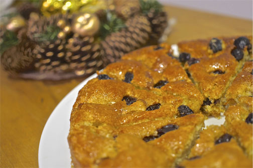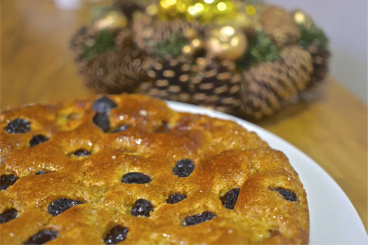 Así que para celebrarlo, un rico pastel de frutas de navidad con miel.