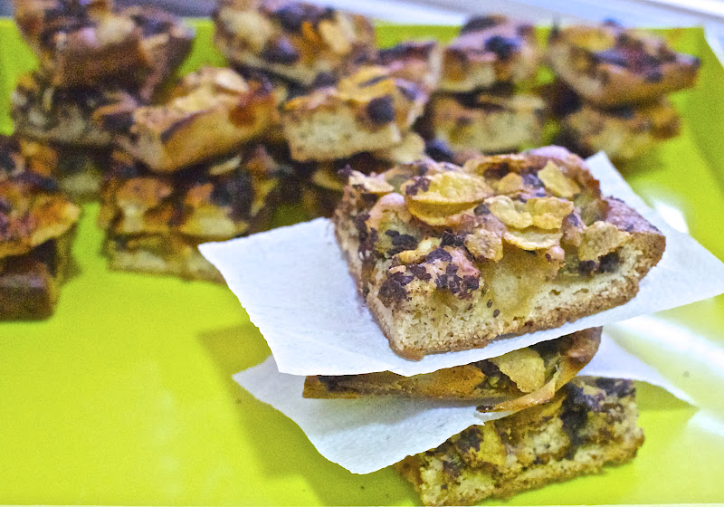 Así que buscando y buscando, encontré la receta de las Cookies Bars o Blondies y la adapté a mi manera para hacer una especie de barritas de frutas y chocolate, muy indicadas para esos momentos de necesidad de dulce.